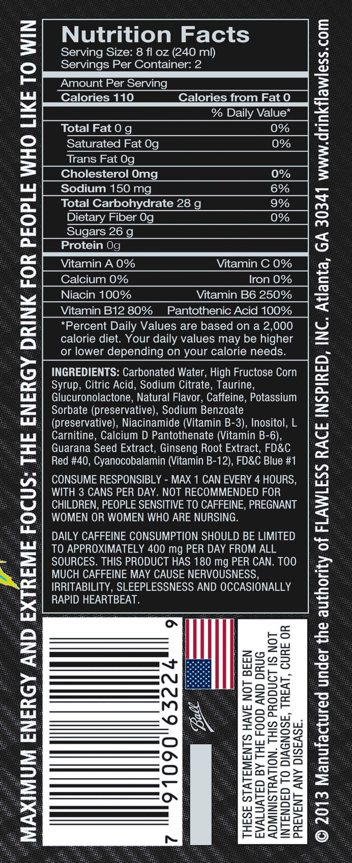 Buy it by the Can!!!! The Flawless Energy blend satisfies your taste buds as well as quenches your thirst with any activity on or off the track. We at Flawless Energy see it like this: To come in first place or to win and come out as number One on top, you need a FLAWLESS performance, a FLAWLESS drive and the energy to get you there. After all, Flawless Energy is the ENERGY DRINK FOR PEOPLE WHO LIKE TO WIN.